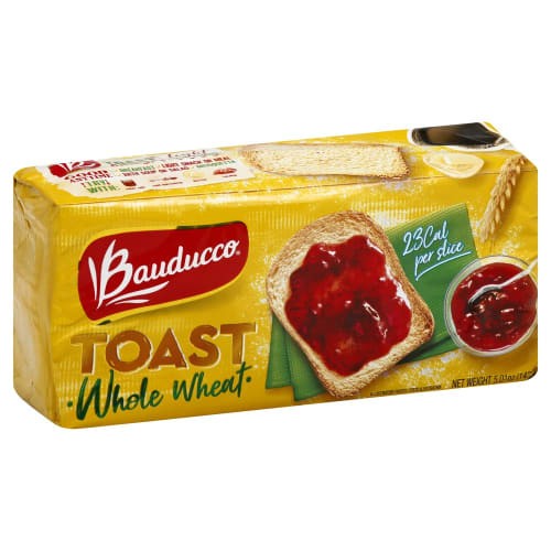 Start your day off right with Bauducco Whole Wheat Toast. Made from wholesome whole wheat flour and baked to crispy perfection, these light and crunchy toasts are perfect for topping with your favorite spreads or enjoying on their own as a satisfying snack. Whether paired with jam, cheese, or avocado, Bauducco Whole Wheat Toast is a delicious and nutritious choice for breakfast or anytime.