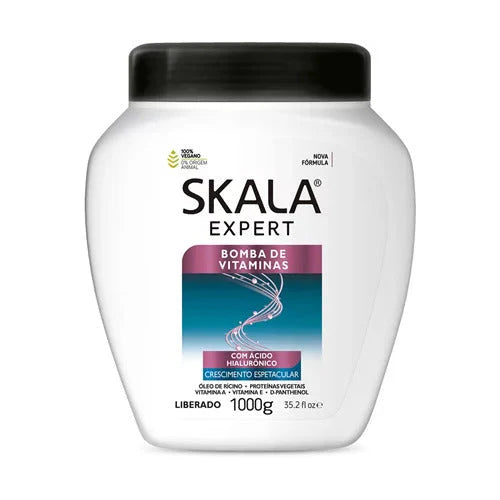 Skala Bomba de Vitaminas Styling Cream help with growth. It has a formula with far-reaching ingredients rich in nutrients that help with hair growth. Prepare for the accomplishments, it is recommended that you use and abuse this line! Ideal for all hair types. 100% Vegan. It can be used every day after shampoo or conditioner.